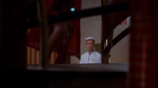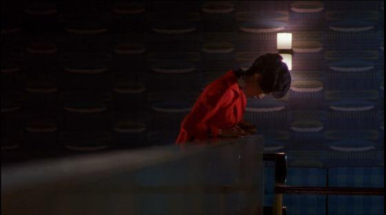 其次,总结这一段里所有的快切镜头,我们会发现它在表现张曼玉的寻找过程的顺序是:先上下,再前后,最后左右。这是不是很符合我们一贯的生活逻辑呢?就像我们找东西时常说的一样,“我前后—左右都找遍了”。看似简单的处理,其实完成的了寻找过程中的递进关系,用这样的方式含蓄的交待出了张曼玉是怎样找到梁朝伟的。而这种含蓄又是和整部影片中的欲说还休的调子高度吻合的。这TM才是张叔平牛逼的地方所在!!!!!那些摄影啊、灯光啊、美术啊都是看得到的,而这种内在的东西真是尼玛创造出来的。