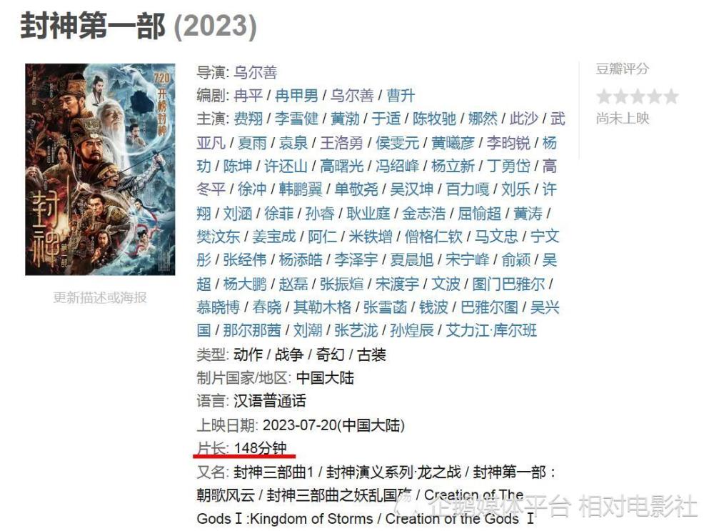 可以看出,仅《封神第一部》的剧情,就已经是如此曲折磅礴。而该片长达148分钟,即2个多小时的电影时长,也是相当考验观众耐心。