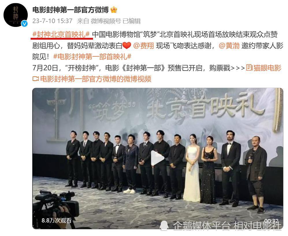 而后者《封神第一部》,也是在7月10日,率先举办了声势浩大的北京首映礼。