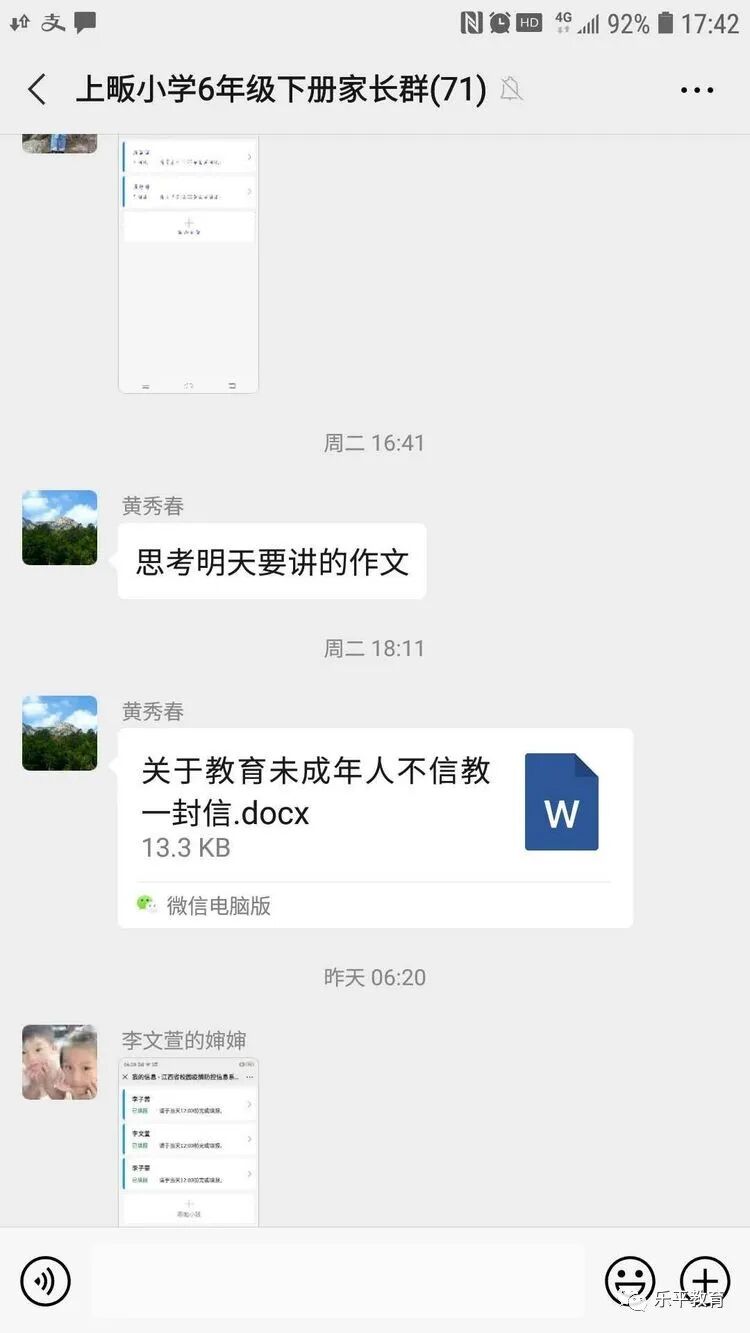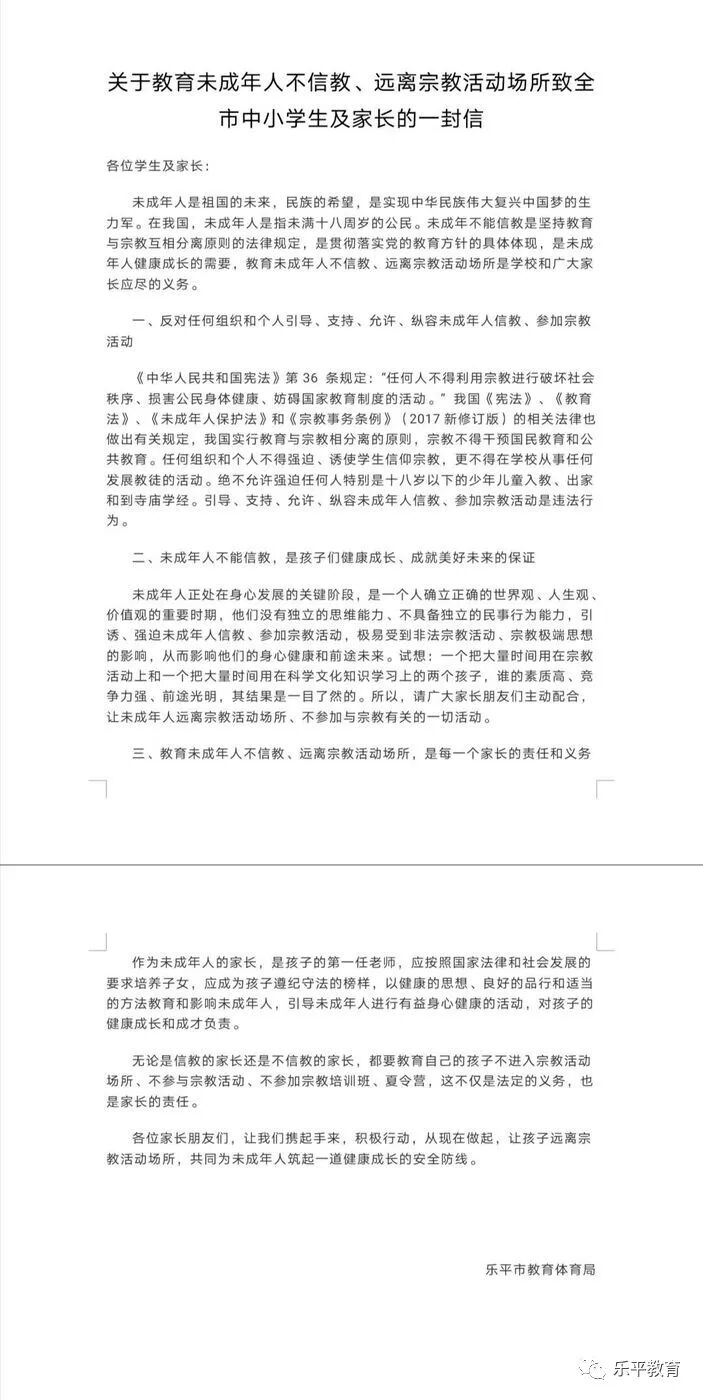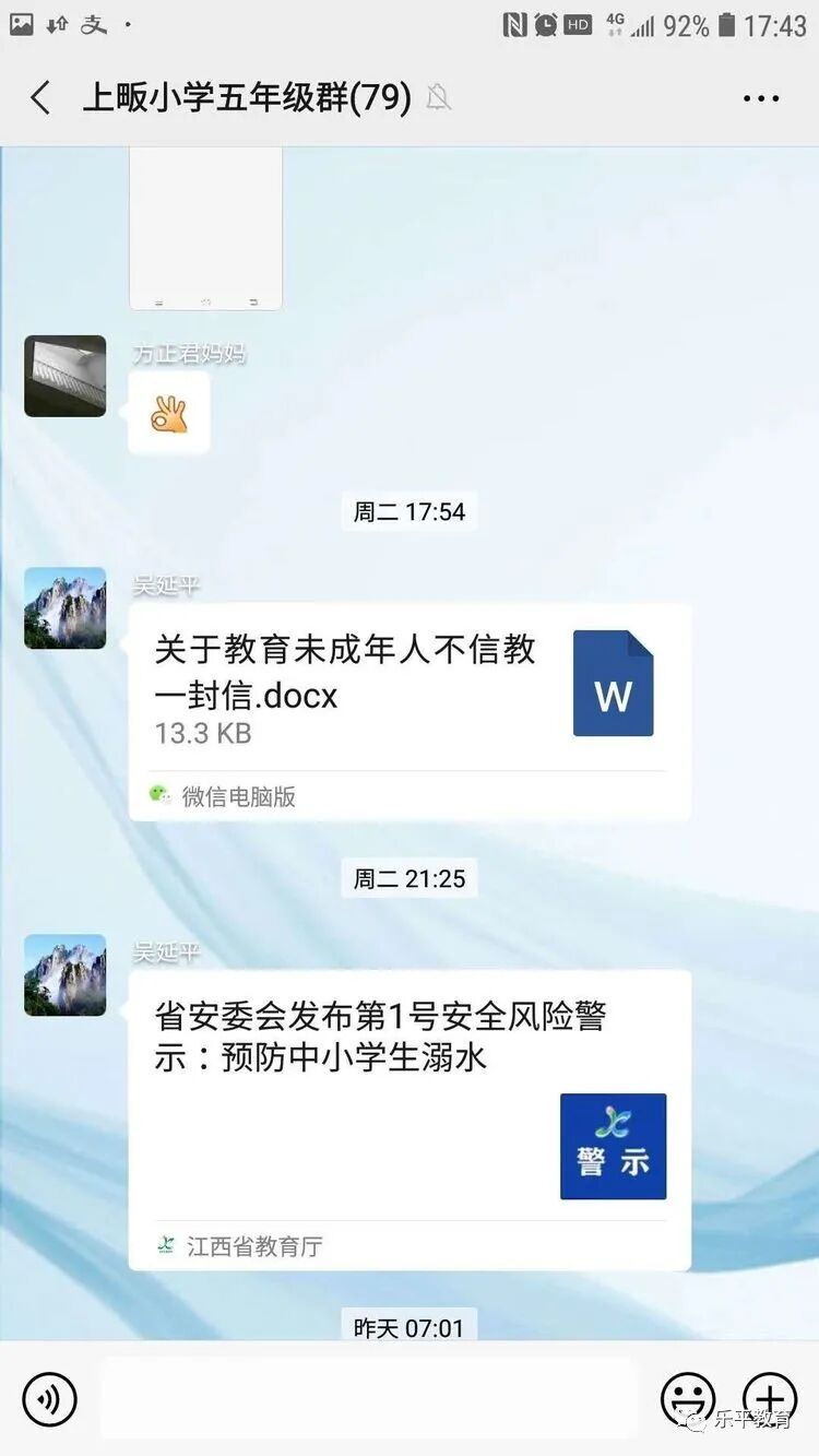 各班在班级群里面向家长发放“关于教育未成年人不信教,远离宗教活动场所”致全市中小学生及家长的一封信。