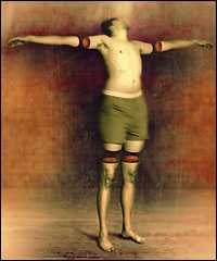 11、Lesch-Nyhan综合症(Lesch-Nyhan syndrome):也称为自毁容貌症,是X一连锁隐性遗传的先天性嘌呤代谢缺陷病,(居俺的理解是某种先天痛风伴智力低下病)自毁容貌症患者在发病时会毁坏自己的容貌,用各种器械把脸弄得狰狞可怕.这种疾病患者常常被束缚在床上或轮椅上.自毁容貌症患者大多死于儿童时代,很少活到20岁以后。