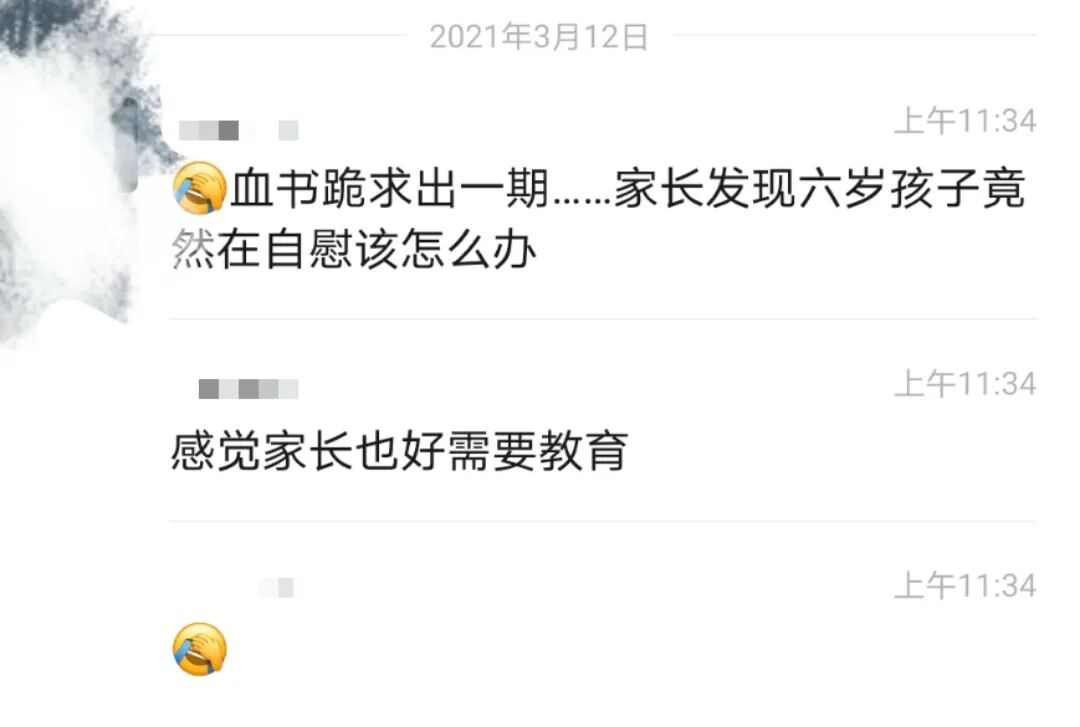 如果到了认知能力比较强的阶段仍然有夹腿现象的存在,父母就更要帮助他们正确认识这个现象(比如把这篇推送转给他们看)。告诉他们,这很正常,这没什么,但要次数适当,注意卫生。