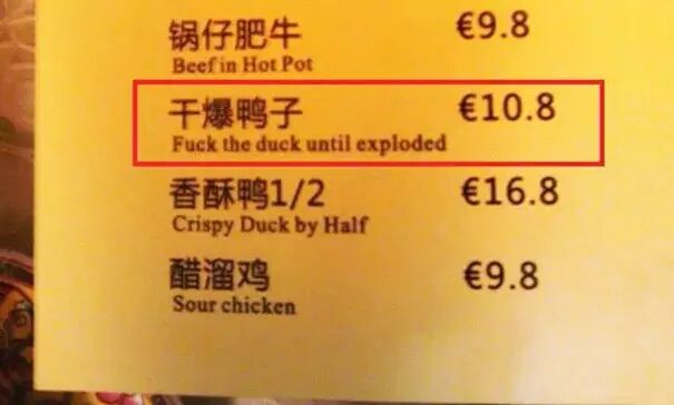 看这道鸭子的菜名被翻的,老外吃的时候真的不会有心理阴影吗??
