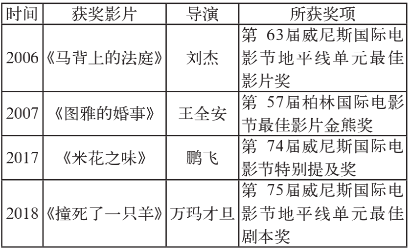 表4.2000—2020年欧洲“三大国际电影节”获奖的华语少数民族题材电影