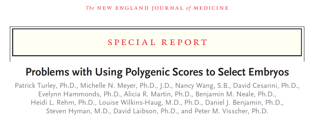 排版 | 水成文1978年,全球首例人类卵子体外受精(IVF)婴儿出生,由于其受精过程在实验室进行,这些孩子被形象地称为“试管婴儿”。“试管婴儿”技术帮助许多人圆了当父母的梦想,至今四十多年时间里,全世界估计已有约700万例通过试管婴儿及其改良技术诞生的孩子。然而,近年来,随着技术的进步,开始出现了一项名为“基于多基因评分的胚胎选择(ESPC)”的服务,该技术可以允许接受体外受精者通过多基因评分选择更健康、更聪明的胚胎。然而,这项服务的益处、风险以及伦理问题,究竟如何呢?2021年7月1日,国际顶尖医学期刊《新英格兰医学杂志》NEJM发表了题为:Problems with Using Polygenic Scores to Select Embryos 的特别报道。该报道描述了“基于多基因评分的胚胎选择(ESPC)”存在的局限性,并警告接受体外受精的患者和医生,不要形成ESPC技术有效且风险很低的印象。相同的基因通常会影响不同的性状,因此,用ESPC技术选择一种性状,可能会导致产生另一种不利的性状,例如基于某个基因选择了让孩子更聪明,此时可能这个基因导致将来孩子出现精神出现问题。文章作者还警告说,ESPS技术的大量使用,还有可能改变人口结构、加剧社会经济不平等以及贬低某些特征。因此,有必要制定针对该服务的标准,并进行相应监管,防止该技术的滥用。定制婴儿多基因评分是对来自全基因组关联研究的个体健康和其他结果的预测。实际上,在成年人中,多基因评分可以部分预测这些结果,但预测能力也较微弱,尤其是对社会和行为特征的预测。更重要的是,该技术对胚胎的预测能力显著降低。然而,即便如此,目前已经有多家公司与进行试管婴儿辅助生殖的医疗机构合作,为那些进行试管婴儿的患者选择胚胎,希望挑选出成年后患糖尿病、癌症、心脏病、炎症性肠病、阿尔茨海默症和精神分裂症等疾病的概率更低的胚胎。甚至,还有公司号称可以根据预测并挑选出将来受教育程度、收入和认知能力更高的胚胎。还有公司称将来可以提供对肤色和智商的选择。多基因评分的缺点“基于多基因评分的胚胎选择(ESPC)”至少需要选出的某种特征给出适度准确的预测,才能说有用。然而,通过全基因组关联分析产生多基因评分时,高分的人和低分的人确实产生了中等甚至很大的差异,然而,这些差异是基于来自不同家庭的人,并未排除变量。当对同一家庭成员进行多基因评分,预测能力则大大下降。例如对将来受教育程度的预测,不同评分的欧洲不同家庭的成员确实产生了较大差异,但是对同一家庭成员之间的预测,则差异大大降低。