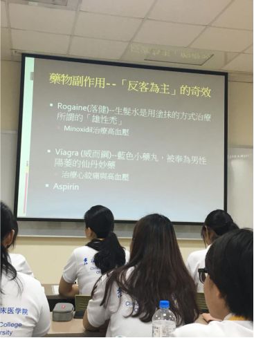 讲座结束后,紧接着的是李怡静教授为同学们带来的“药物与健康食品”课堂。通过李老师对洋地黄、阿司匹林等经典药物“历史”的讲解,同学们了解到:药物的副作用如果能够得到适当地运用,也可以起到令人始料未及的效果,甚至“反客为主”。这也是一种新的用药思维。