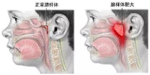 图源:北京科技报社除此以外,腺样体肥大还会导致鼻塞、呼吸粗重、打鼾等症状,在这些作用下,儿童患者可出现全身症状,如嗜睡、易激惹、生长发育减慢,甚至认知障碍,可伴有睡眠多梦、易惊醒、磨牙、反应迟钝、注意力不集中、遗尿等。
