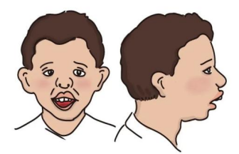图源:成都市第六人民医院久而久之,由于呼出的气流对上颌产生持续推力,便可能形成腺样体面容。表现为上唇短厚翘起、唇肌肥厚,鼻根下陷、鼻翼萎缩、鼻唇沟消失,牙弓狭窄、腭盖高拱、牙列拥挤,上前牙前突、下颌骨下垂、下颌后缩畸形等,严重影响患儿面容美观。