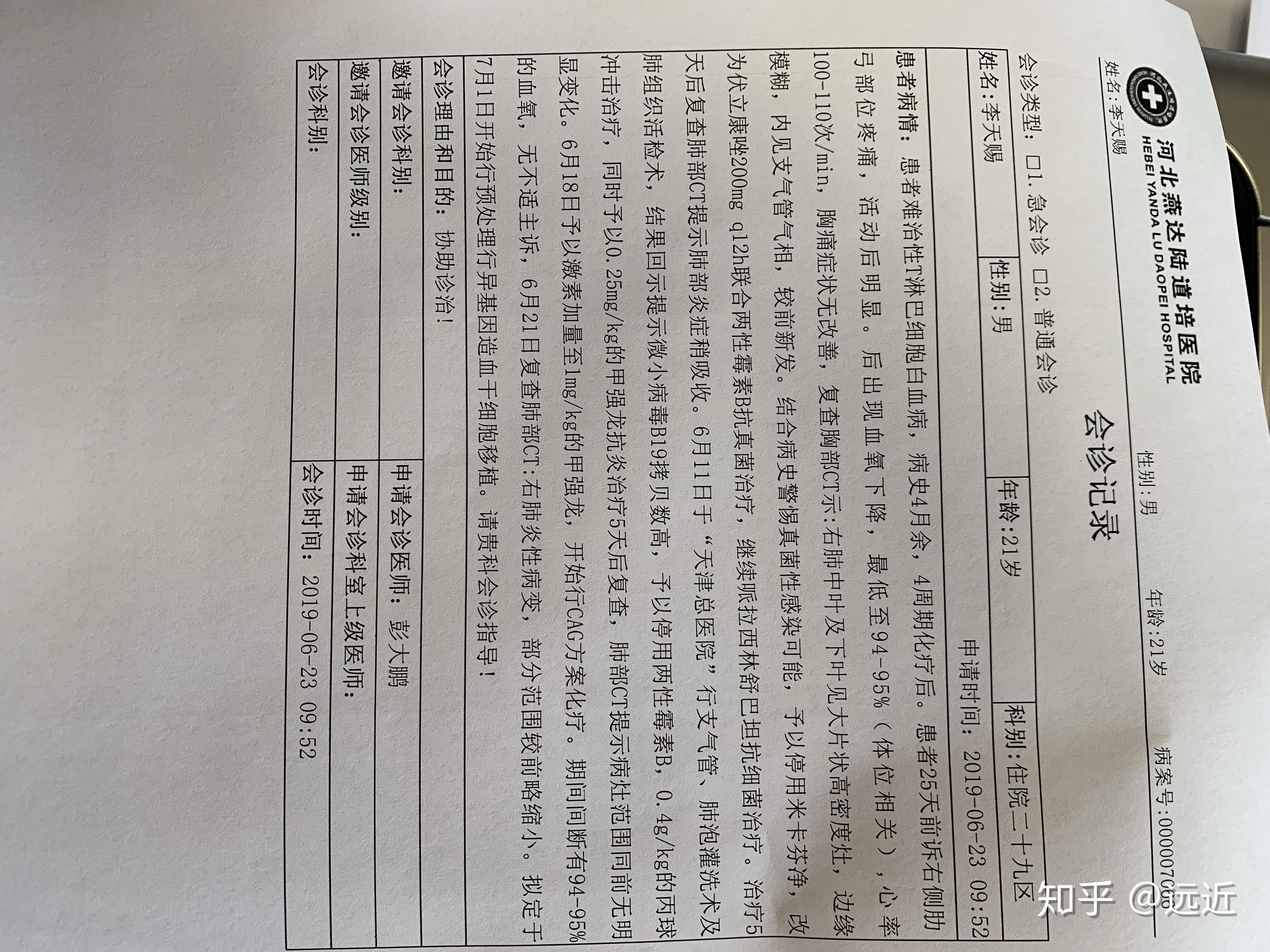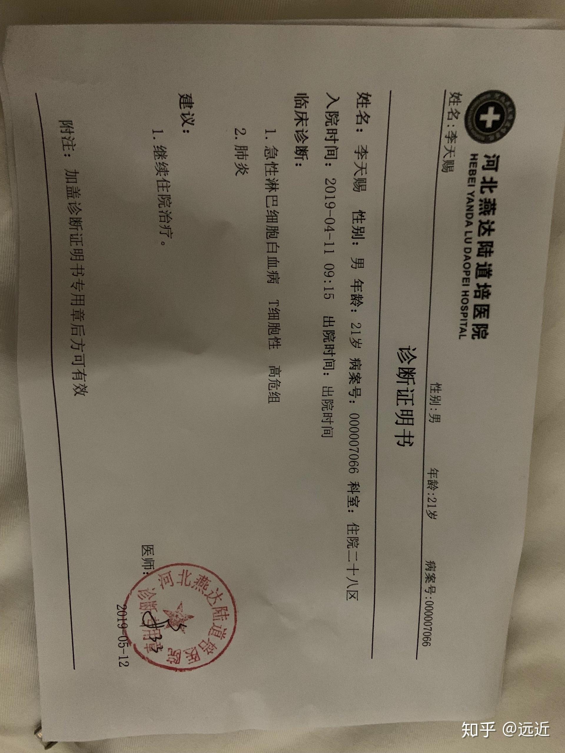 在湘雅医院做的两个疗没有让我完全缓解,甚至白血病细胞残留还有百分之40多,很高危。前几天转院到河北燕达陆道培医院,差不多是全中国最好的血液科医院了,医生找我们谈话,说要做好心理准备。