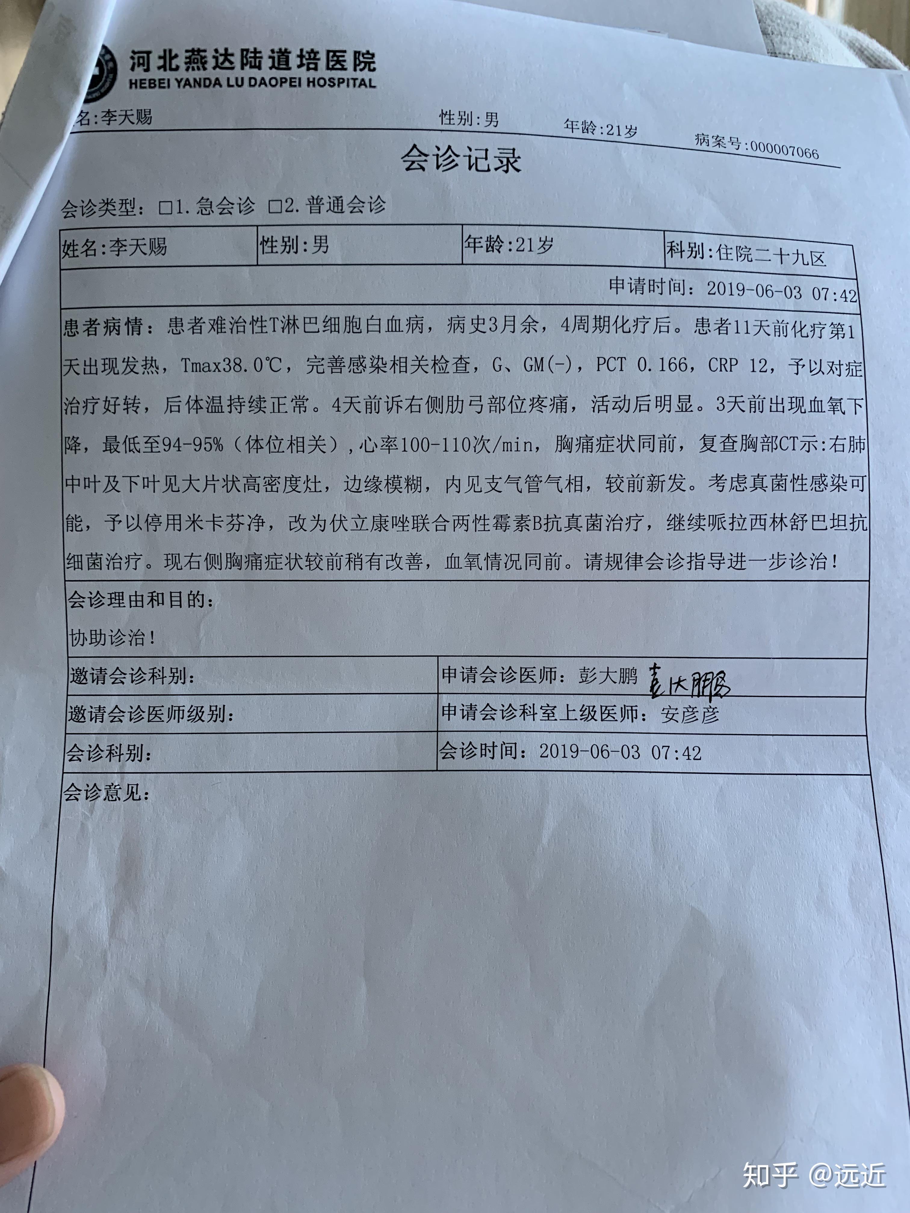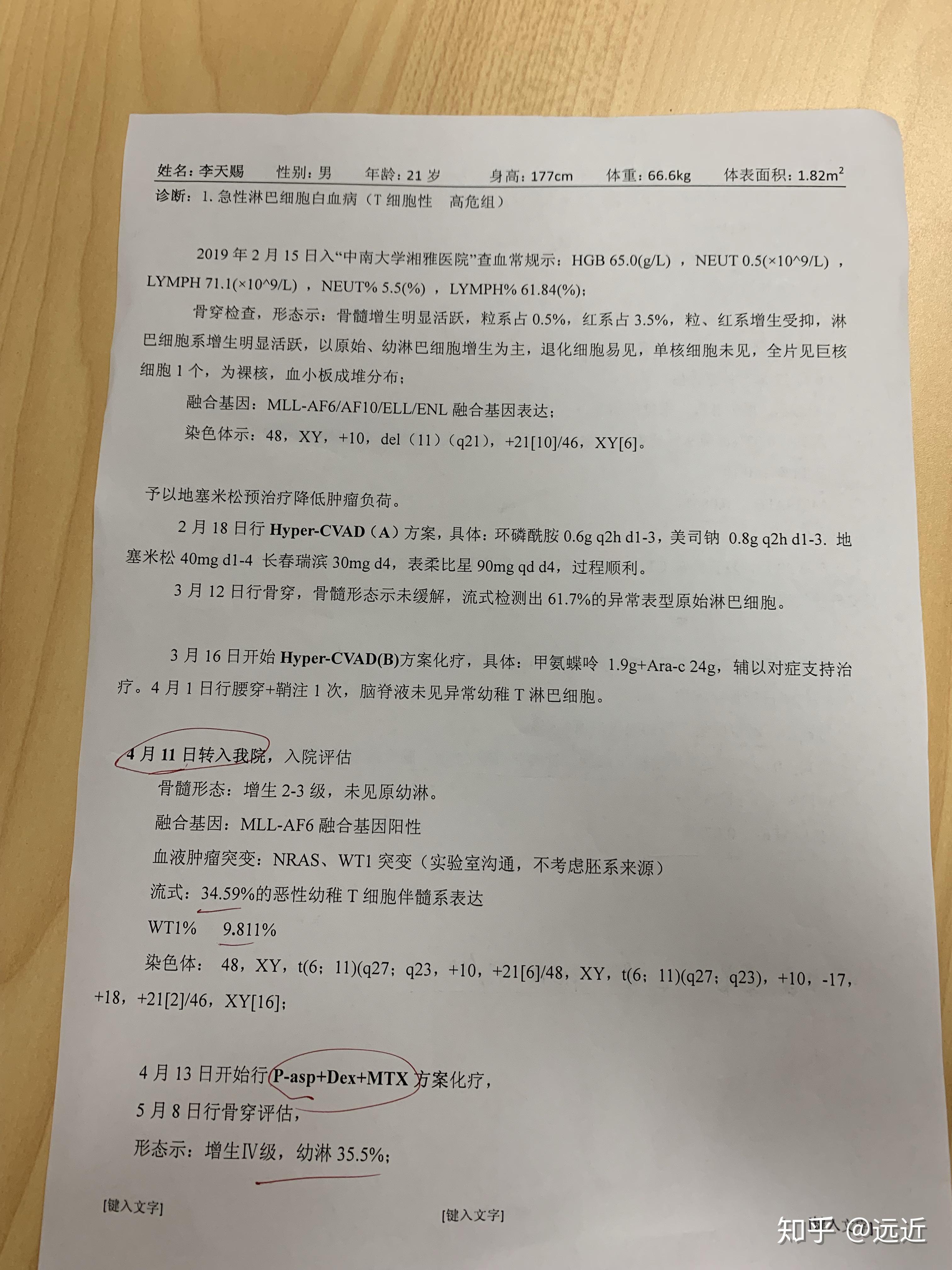 从今年2月初确诊高危急性淋巴白血病T型,到现在的139天,经历五次大化疗,7次骨穿,5次腰穿;从被湘雅医院赶出院,让我回家好好珍惜人生剩下的时光,后转院来到全中国唯一收我的陆道培医院。而后经历严重肺部真菌感染加病毒感染,前后跑了五家大型医院:天津医科大学总医院,天津血研所,北京空军总医院,北京协和医院,燕达医院。