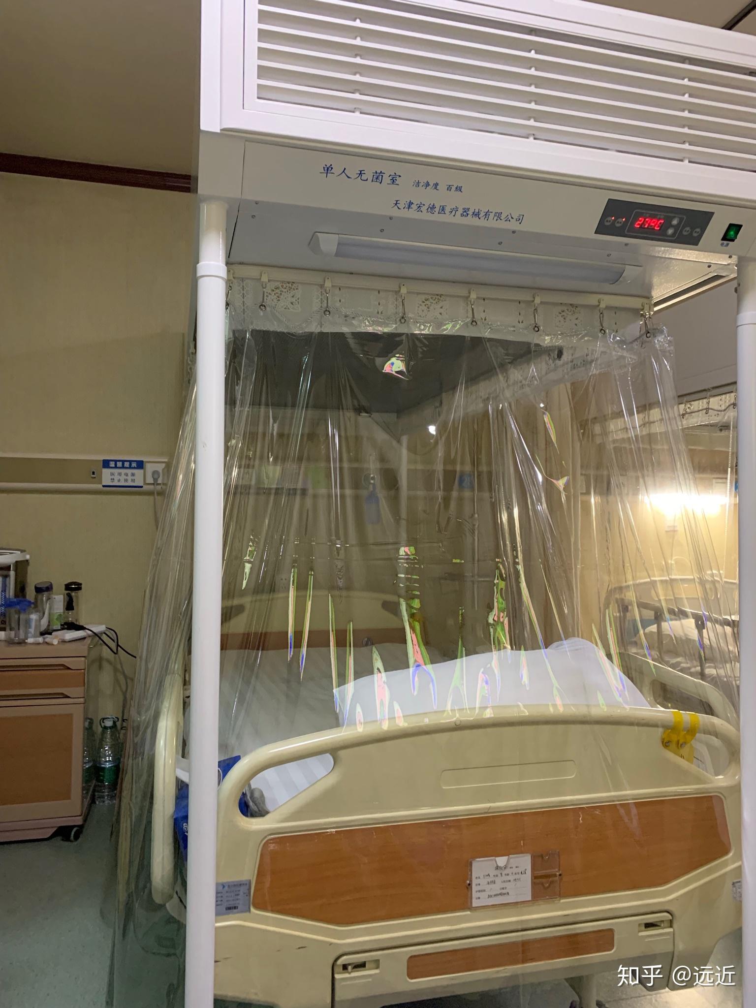 因为第三次化疗第二个阶段的原因,这几天血象低得厉害,中性粒细胞只有0.11,怕在普通病房里被感染,转到层流床。