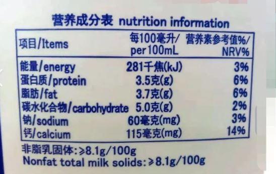 比如这个,每100毫升有5克糖,一个普通盒装牛奶200毫升就有10克糖,相当于2茶匙。