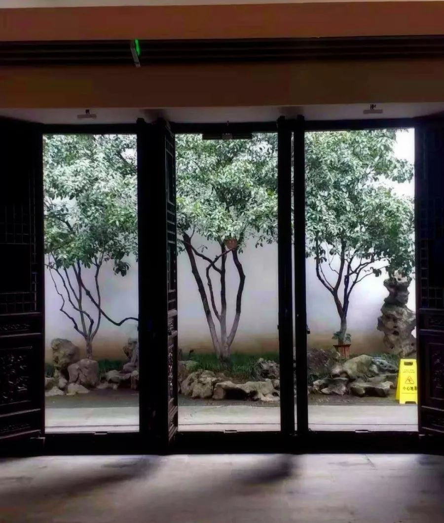 ▲ 临展厅的三扇门正对着不同形态的三棵树,造景上独具匠心。