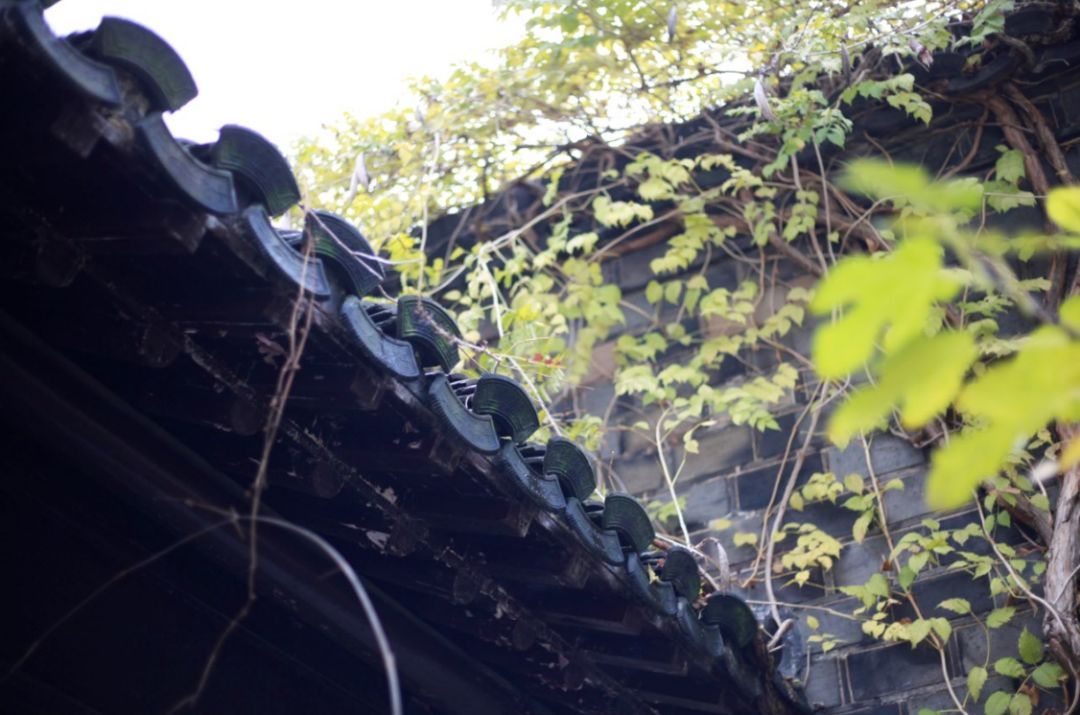 ▲ 几场秋雨过后,庭院里的树叶落了一地,但是墙上的爬山虎却依然层层叠叠。