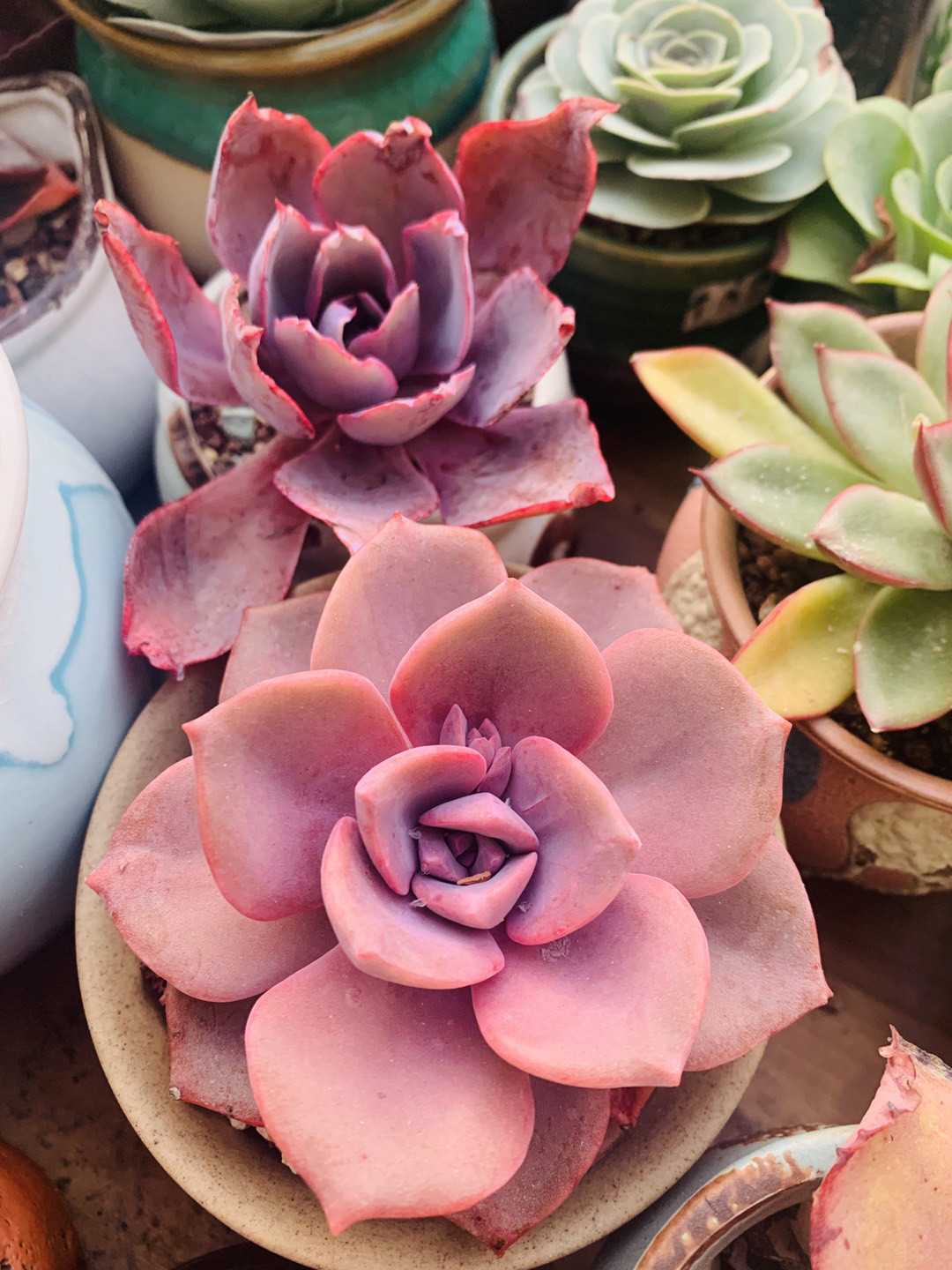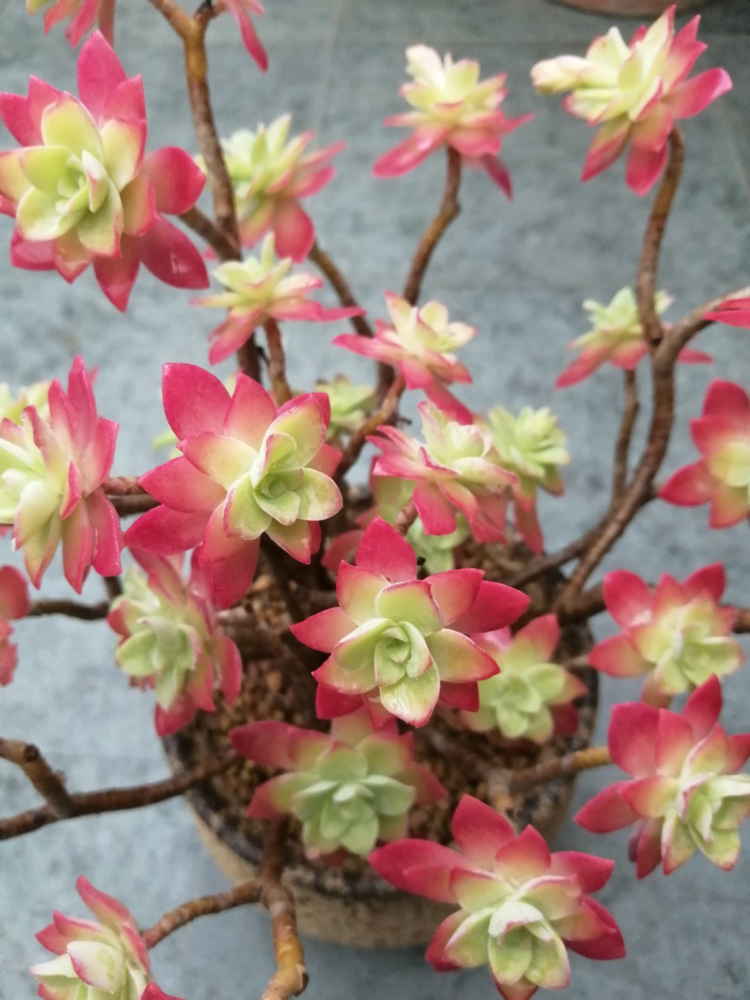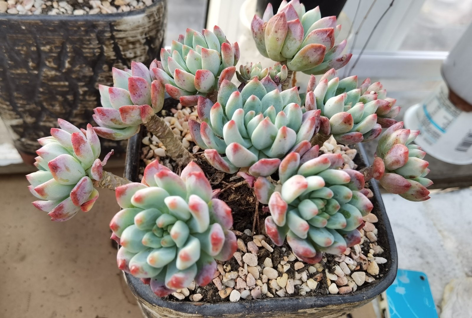 贝瑞缀,朋友买回来的,好长时间不服盆,蔫巴巴的扔给我,养了一年多,变成朵朵缀了,朵越小颜色越粉!