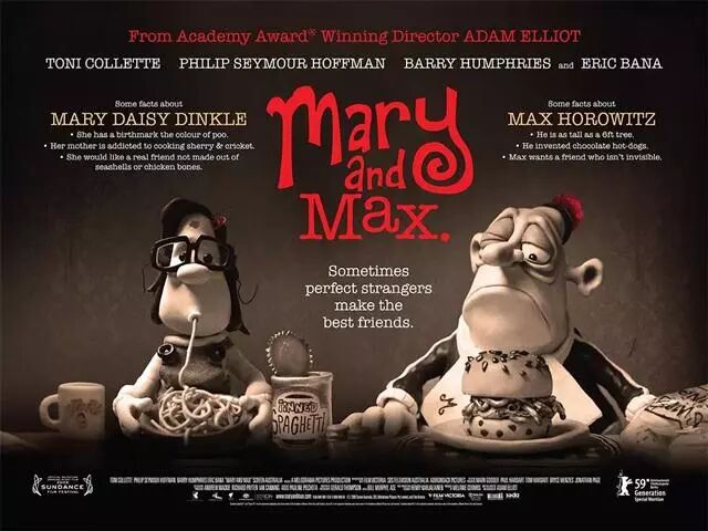 《玛丽和马克思》由亚当·艾略特执导,讲述笔友之间20多年友情的动画作品,同时这也是导演的半自传式的影片。讲述了两个古怪笔友长达20年的友情,怪异却纯真。情感和情节都十分朴实,却直击心灵。