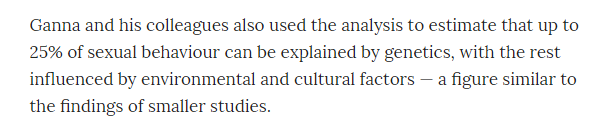 Science文章也说了,同性恋遗传因素只是很少一部分,更多的是社会风气影响。而当一个社会上充满同性恋支持者声音的时候,也会让越来越多不明真相的年轻人为了迎合周围声音,而不是自身的意志决定性取向,这才是令人恐惧的地方。本文由解螺旋学员T**a投稿,授权编辑叶子整理发布。本文仅代表作者个人观点,不代表解螺旋立场。—END—