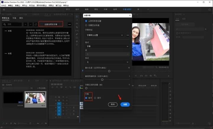 稍等一会,就能看到转换好的字幕内容了,点击【创建说明性字幕】,还可以设置字幕的行数、样式等。