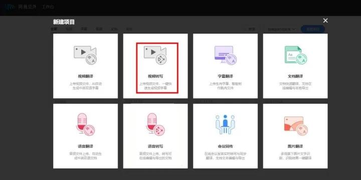 这是网易的在线网站,有视频转写、语音转写、字幕翻译、视频翻译等功能,其中的【视频转写】功能可以将视频快速转写为文字。