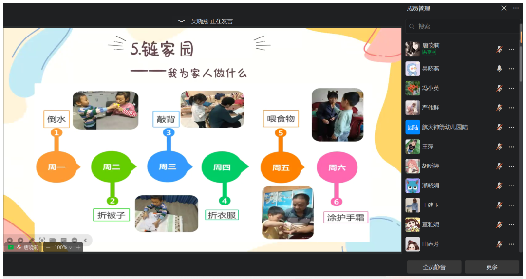 中班教研组分享的是《我做哥哥姐姐了》主题下的实施与评价,老师们通过聚焦主题中的审议和主题中儿童的发展进行分析,例如五链“提升”中,聚焦的是主题中儿童的发展,以值日生为主来链接幼小衔接,引导幼儿链接自己的日常生活经验,进行设计值日生牌、争做小小值日生以及链接到家园我可以为家人做什么等等。