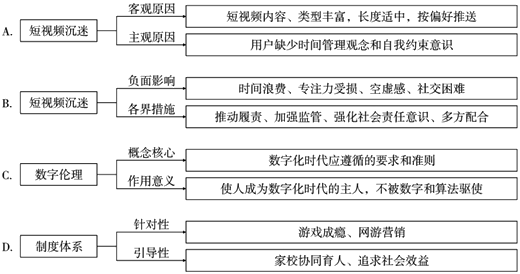 A.数字化时代青少年游戏、短视频上瘾等网络沉迷现象普遍,说明这类青少年缺少时间管理观念和自我约束意识。