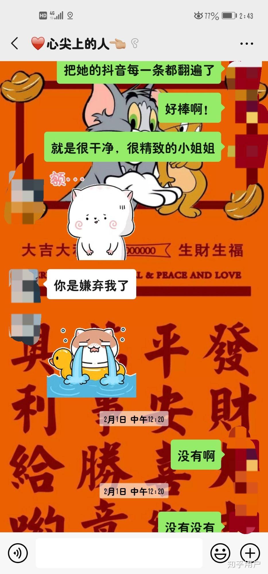 前几天我在某音上刷到一个“南妮”的小姐姐,她主要发自己单身生活的视频,很干净,很温柔的样子。我就推荐给了大宝贝,说这个小姐姐的单身生活很精致,我把小姐姐的作品都翻了一遍,发现她每个视频里配的音乐我都很喜欢,我就@了大宝贝。结果大宝贝吃醋了,问我是不是嫌弃她了。啊啊啊啊,她竟然吃醋了,要知道她可是从来没有过的。下面聊天记录,高糖预警!