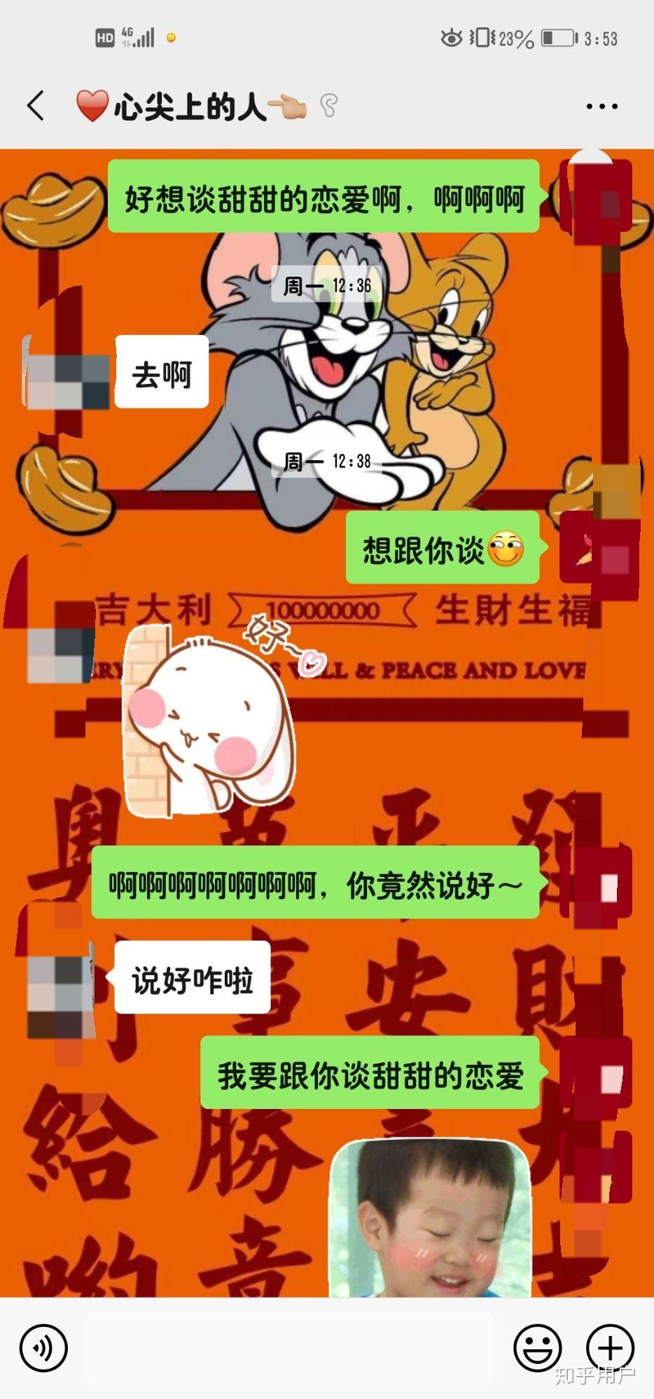 那天我发消息跟大宝贝讲,想谈甜甜的恋爱。她回复,去。我又回复:想跟你谈,她说:好。啊啊啊啊啊啊啊,她竟然说好。我的天啊,她竟然说好,开心到飞起~