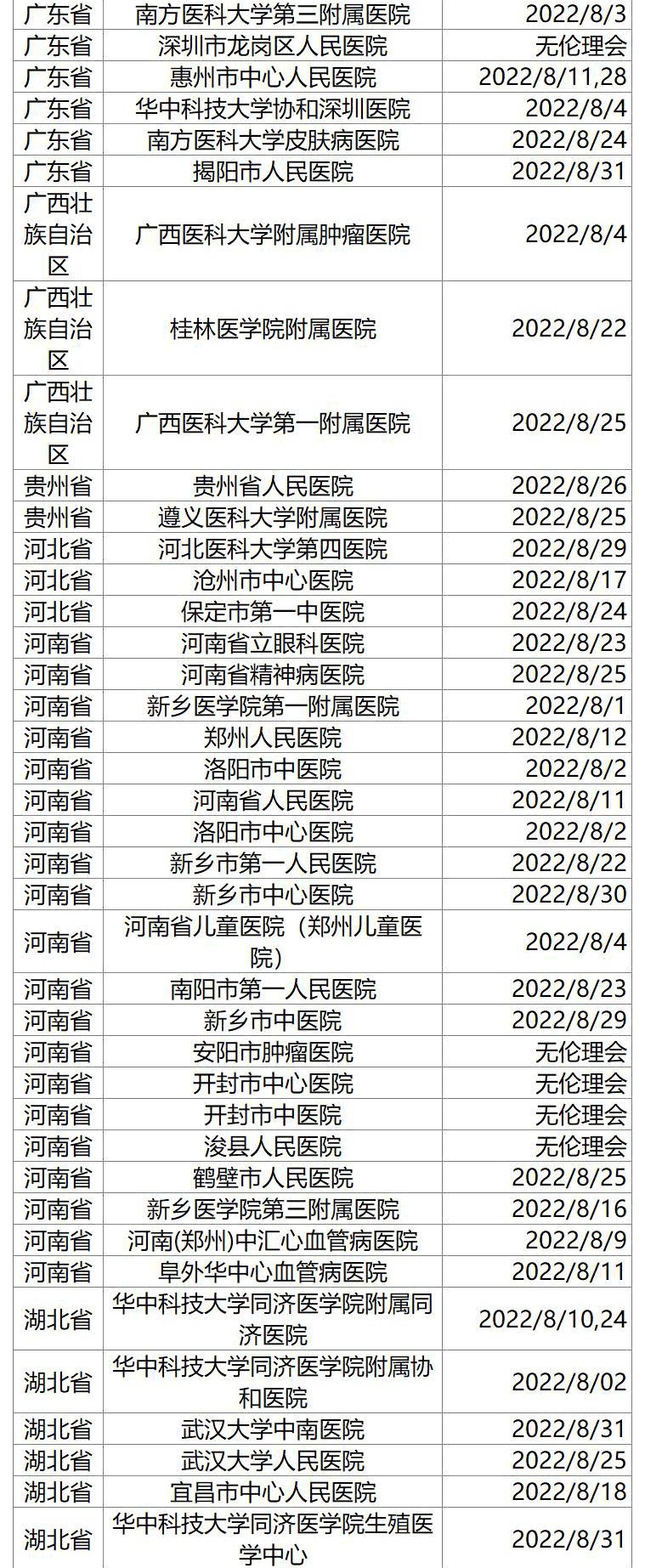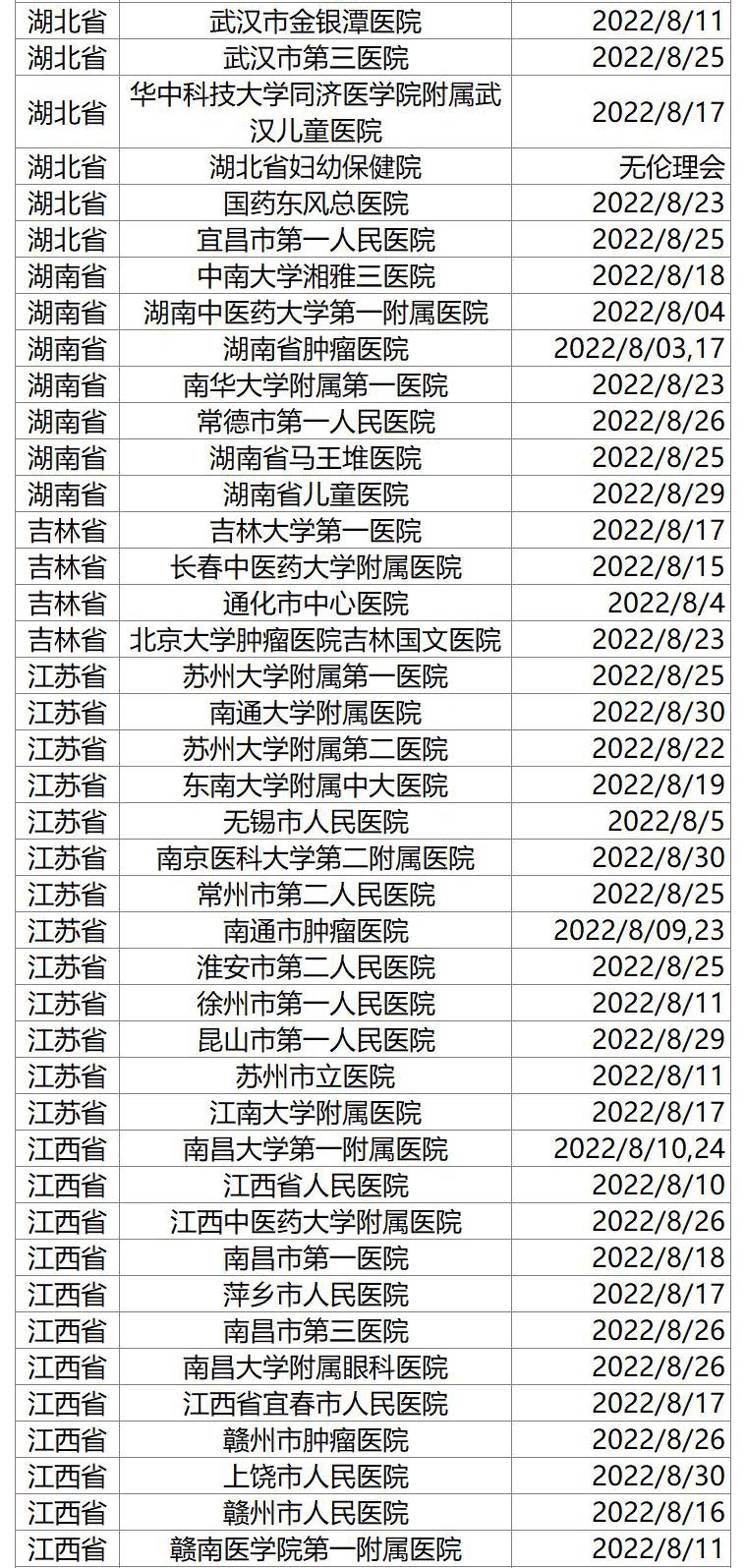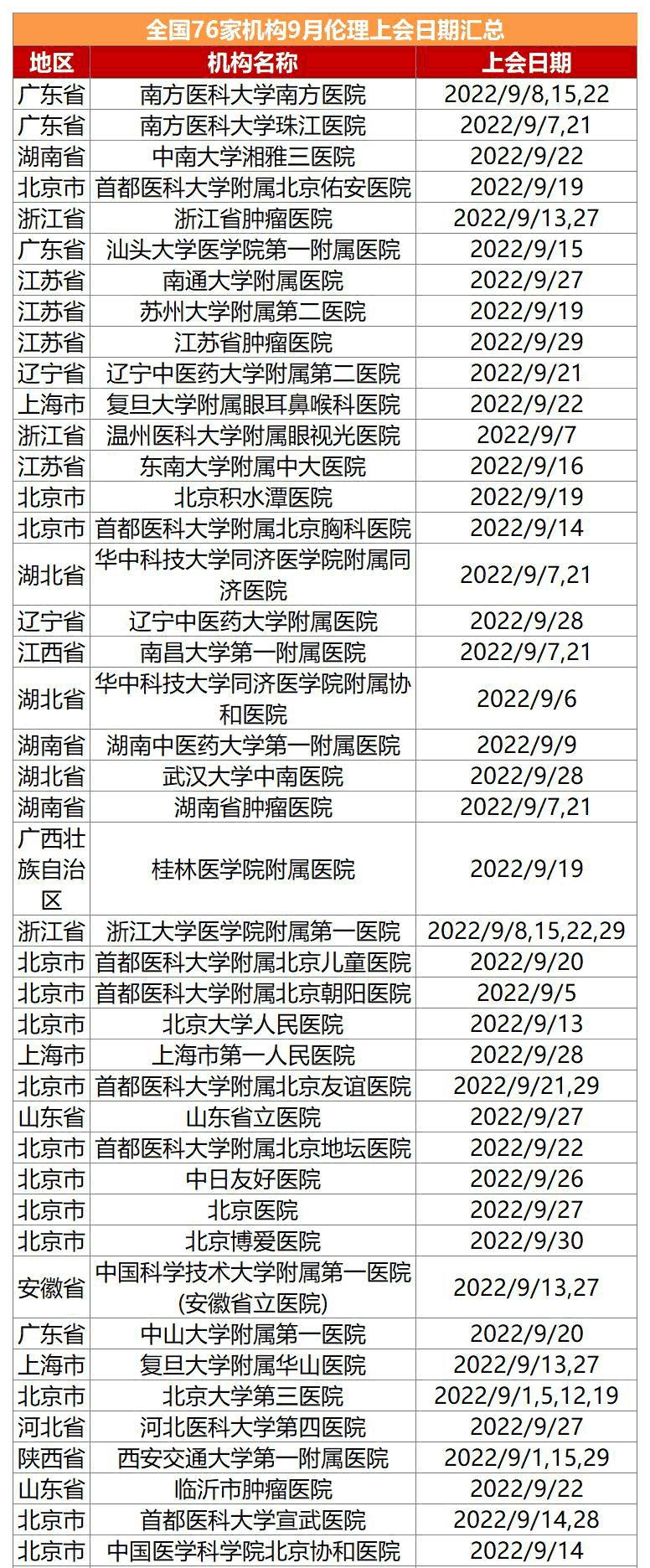 手机访问:wap.265xx.com持续更新!全国161家中心8月、76家中心9月伦理上会日期汇总