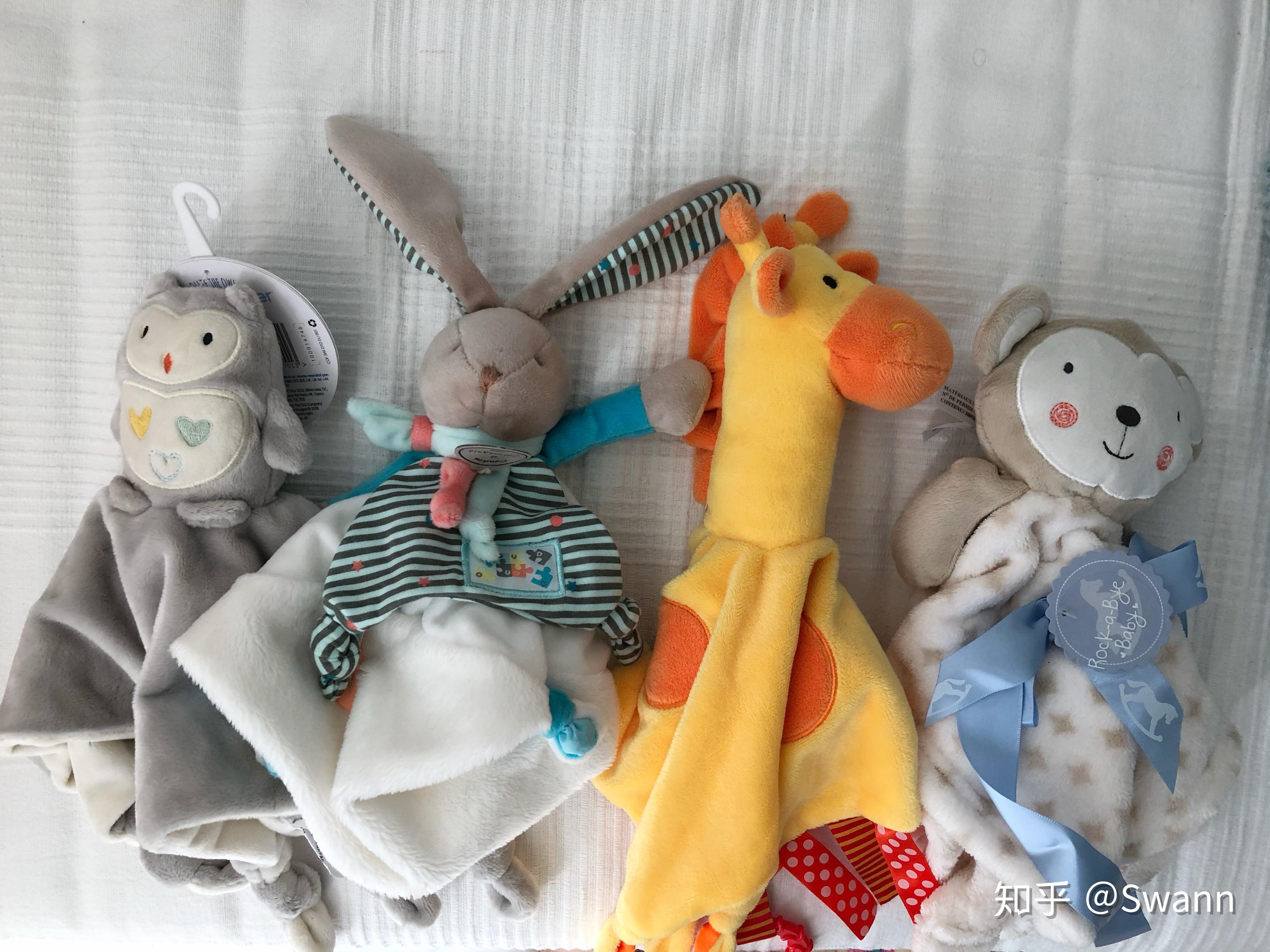 把这个问题下知友的答案都看了一遍,确实因人而异,为了增加样本量,我又去某宝一家有14979个评价的店铺浏览了一下,大致分为“有效派”和“无效派”,有效派宝宝确实把安抚巾/安抚玩偶当作“好朋友”、“陪伴物”,起到情绪安抚作用。无效派宝宝则没有对此产生兴趣。