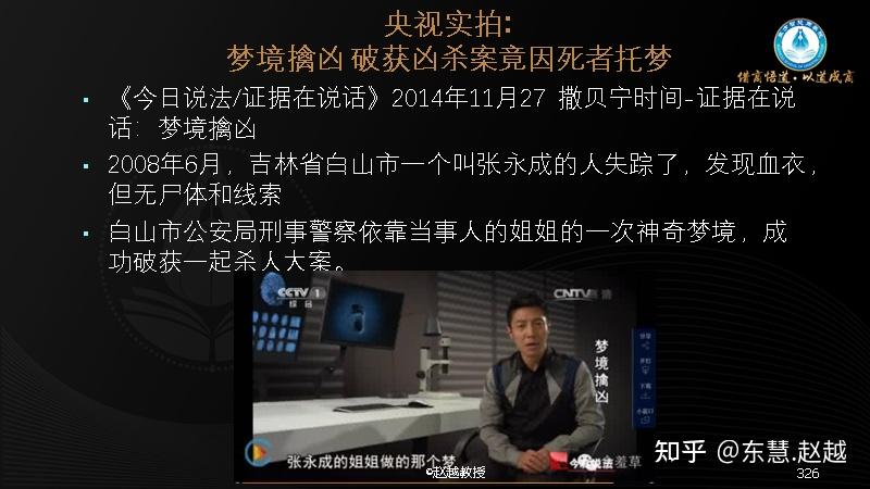如果说前面这样的比较个人化的案例不好核对,建议查一下一些公案。比如中央电视台一套的《今日说法》的2014年11月27号的一期,题目是《梦境擒凶》。里面有一个完全可以验证的真实案例。