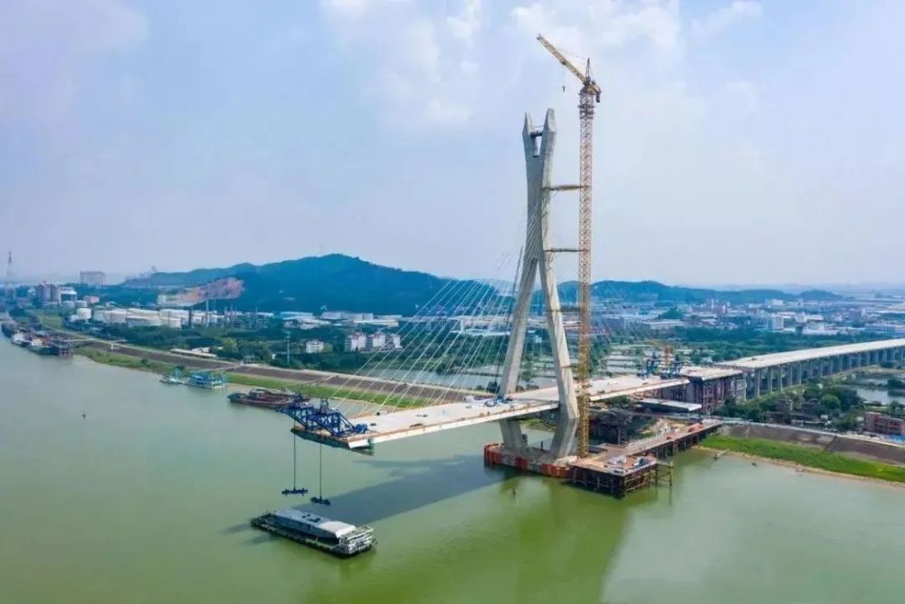 日前,佛山市富龙西江特大桥施工已进入冲刺阶段,桥面边跨将于6月底实现合龙,中跨主拱将于9月实现合龙。佛山市富龙西江特大桥项目路线全长约5.8公里,设主桥1座、枢纽互通立交2处,其控制性工程富龙西江特大桥为主跨580米的双塔双索面钢-UHPC组合梁斜拉桥,桥梁全长1770.6米,建成后将成为佛山最长跨区大桥,被称为“佛山第一桥”。