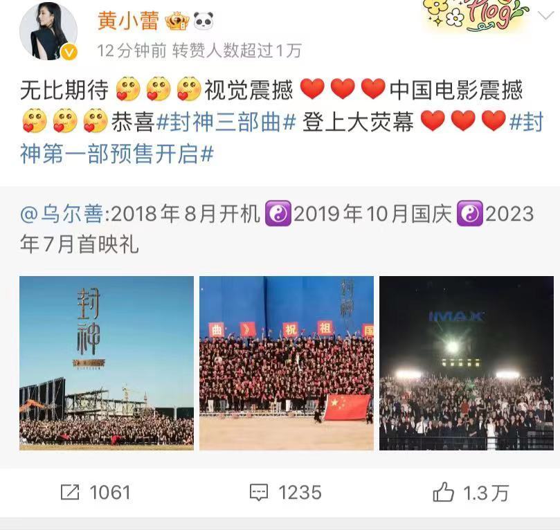 有观众对《封神第一部》的评价是被导演圈粉,其正确且优质的电影美学观,有深度,有技术,还有颜值,中国史诗电影该有的模样。