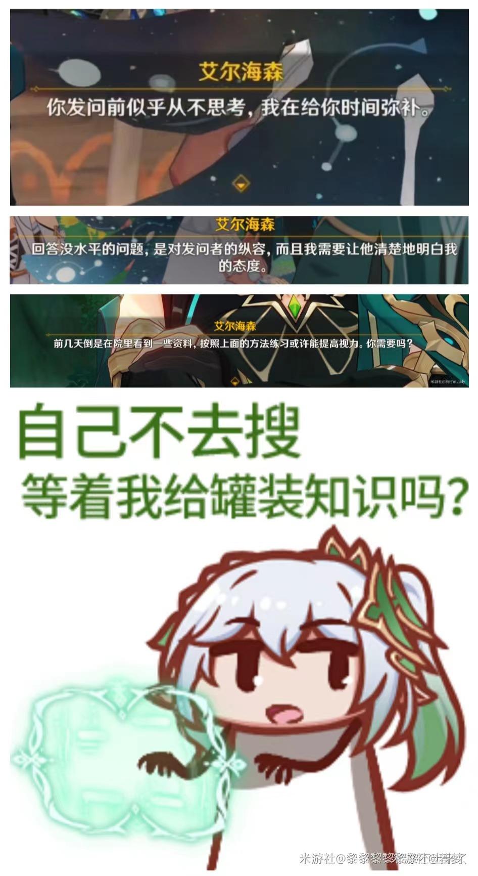 想想你的提纳里、柯莱,你的艾尔海森、赛诺和多莉