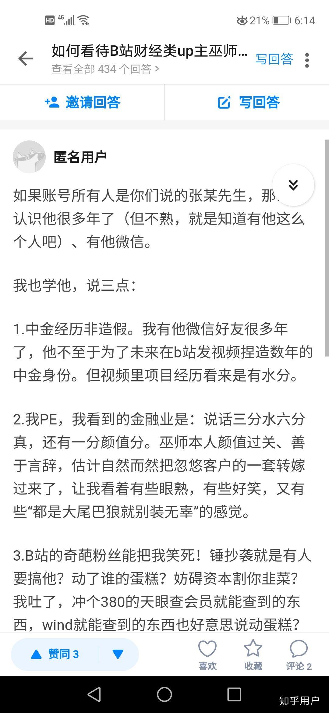 3.11日最近刚刚看了b站半佛仙人的直播,大致27、28分钟左右吧里面刚刚有提到巫师财经,证实巫师确实是中金的。并且说圈里很多人都认识,这算是知乎大V,有身份认证的了吧。所以就不要说那些看起来特别可笑的回答,辞职去做产品经理了,有脑子的都知道这个可能性会不会有。其他的你们爱咋想咋想,既然身份都被证实了,这个问题答案就显而易见啦。希望大家理智些,不要被人当枪使,抄袭洗稿立人设都有,知乎也有理有据的,你能继续看就看,不看就取关,甚至谴责也都没关系,但莫须有的其他罪证还是不要加到别人头上。这个问题不单单说的是巫师,还把无辜的海盗都牵涉进来,他下面的评论都变成什么样了,一个认真上传视频的up无辜遭受这个(他也没有暴其他黑料吧),如果是你你会怎么样?不求设身处地感同身受,但求在没有证据的回答情况下别因为自己的恶意揣测去伤害无辜的人