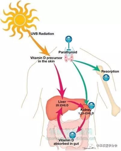 由于日照少、肝肾疾病所致羟化酶缺陷致1,25-双羟维生素D合成代谢障碍;