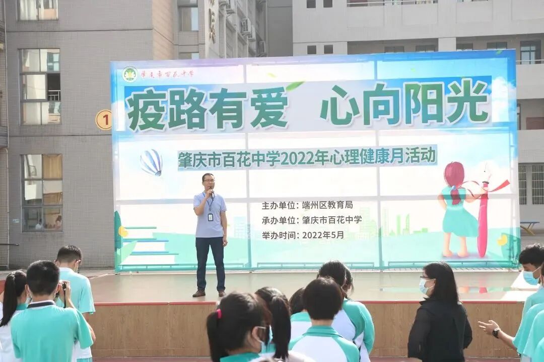 5月25日,肇庆市教育局在肇庆市第一中学初中部举办主题为“‘疫’路有爱,心向阳光”的端州区中小学心理健康活动月开幕式。