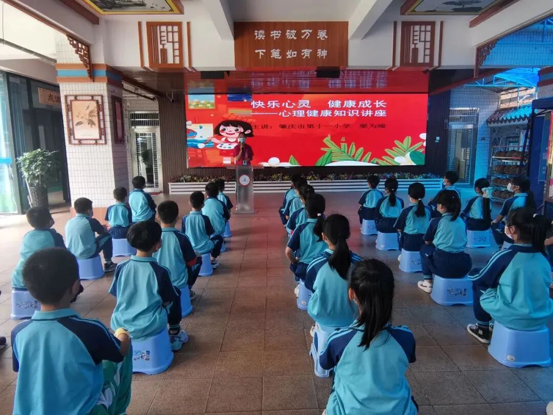 图源:肇庆市百花中学活动通过召开心理健康主题班会、组织开展心理健康主题漫画评比活动、心理健康主题讲座、心理健康团辅活动等,为同学们缓解情绪,学会心理调适的基本技巧,提高个人心理素质,以更积极的心态投入到学习和生活中。肇庆市第十一小学