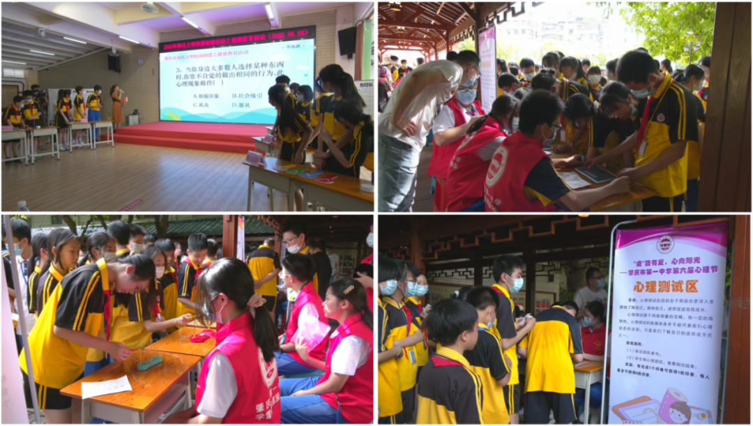 端州区中小学心理健康活动月开幕式活动内容丰富,形式多样,有心理健康知识竞赛、心理健康教育主题班会、心理游园会、医教结合项目之心理健康知识现场宣传与咨询等,精彩纷呈。
