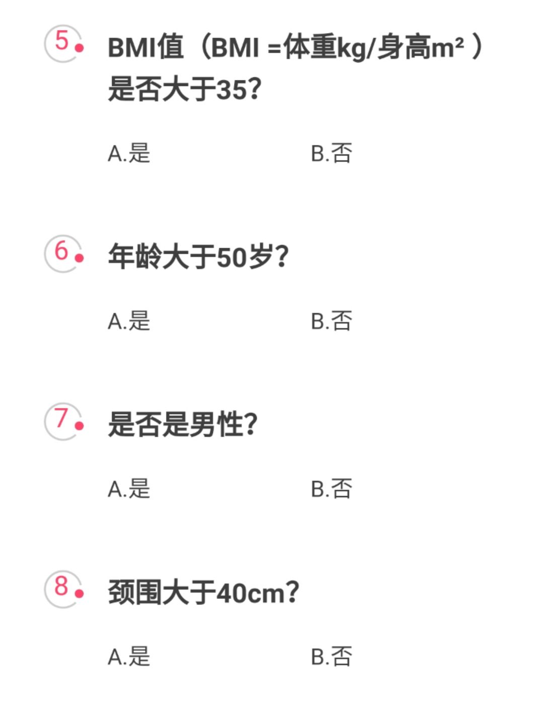 下面这八个问题你们可以自测一下,如果有其中3个问题的答案都是“是”,那……赶紧切医院!多半可能有睡眠呼吸暂停综合征!