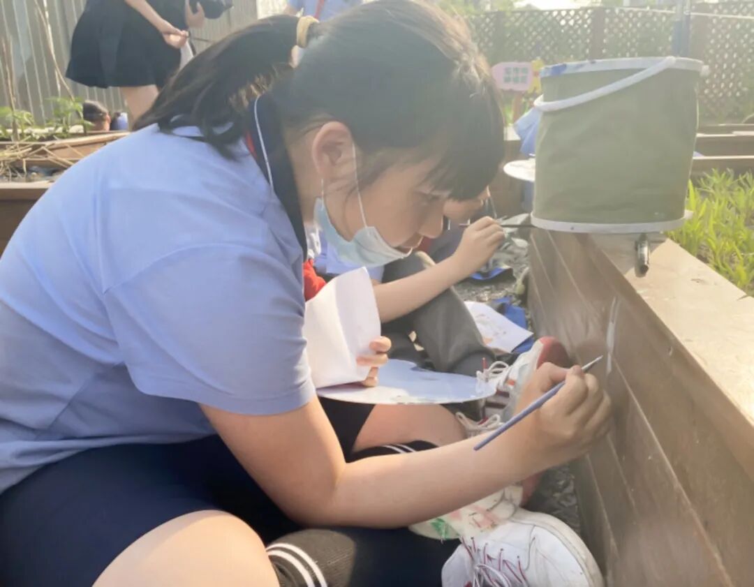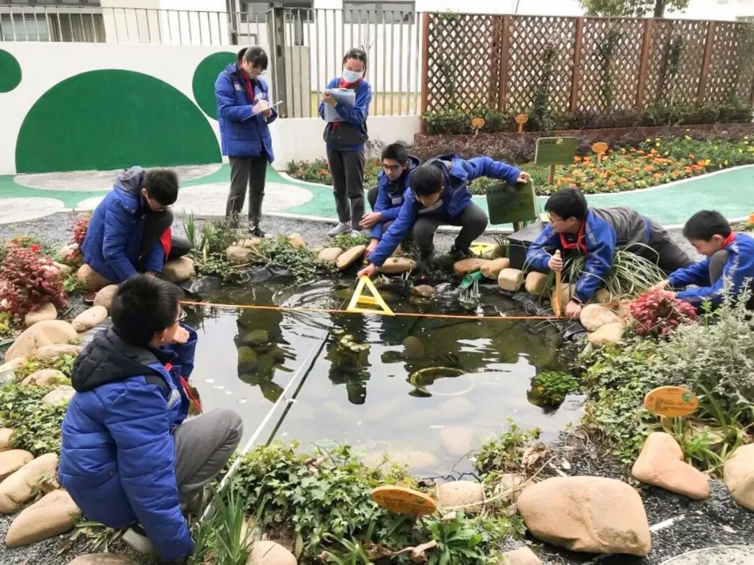 在那里,教师共同开设《行走的自然课堂》,生物老师带领同学研究动植物多样性,美术老师带领同学用画笔美化种植箱,音乐老师开花园音乐会,劳技老师开展草木染课程,数学老师带领同学测量池塘的蓄水量,班主任老师在那里开展社会主义核心价值观友善教育和劳动教育的班会课。