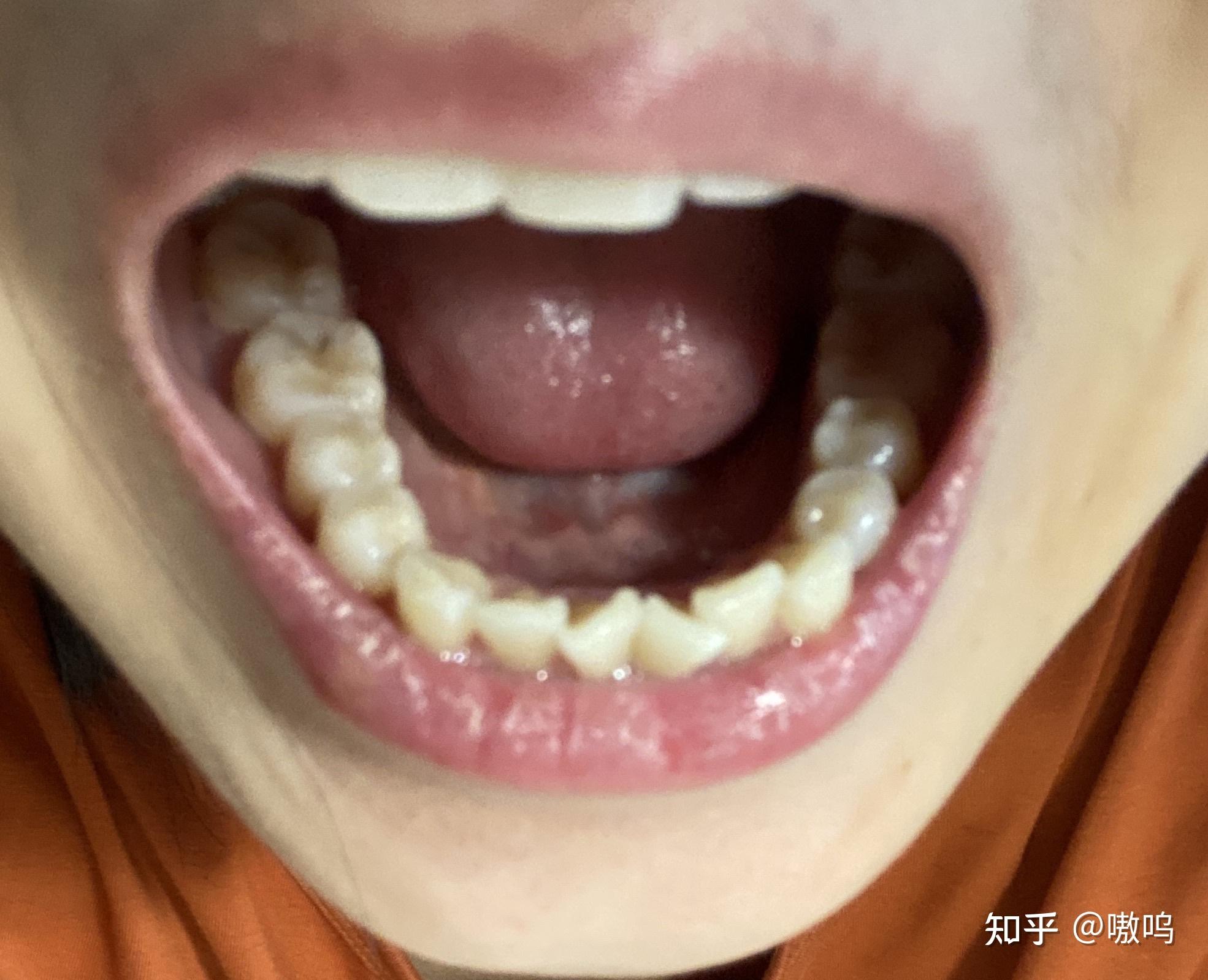 自身牙齿还比较健康,下牙拥挤,张了四颗智齿,把门牙挤歪了,还有一个门牙翘起来,嘴巴都闭不上。。就凸嘴,被抓拍就很丑,法令纹啊都出来了……