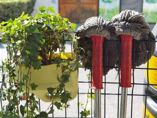 我对旁边扫地的李姐说:“李姐,是不是物业不同意给你买清洁工具?怎么还要捡旧的拖把用呢?”