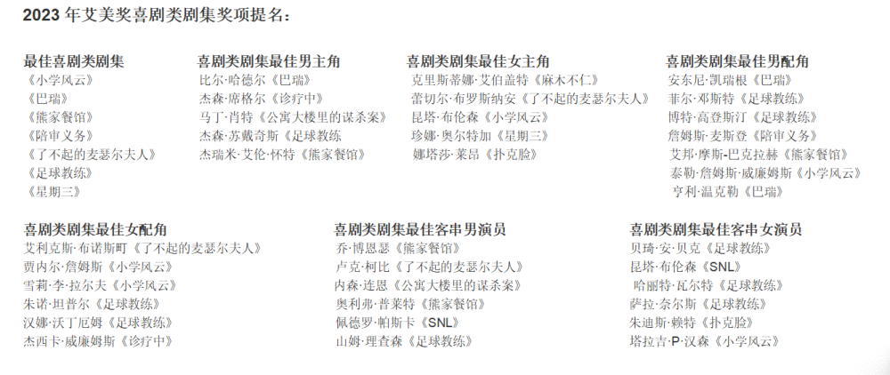 2023年艾美奖喜剧类剧集奖项提名: