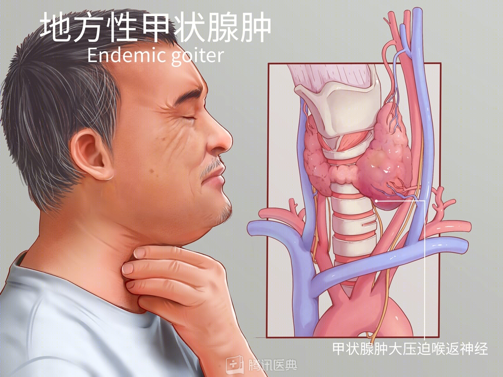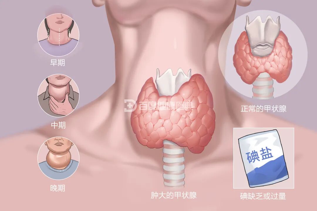 碘缺乏会患上缺碘性甲状腺肿,也就是我们常说的“大脖子病”。