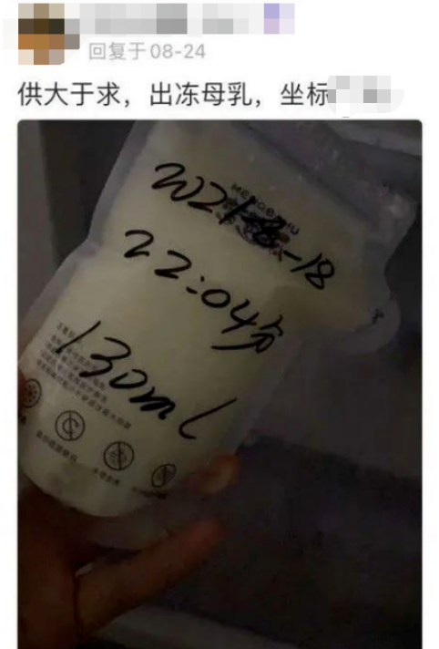 聚集了3.2万用户的百度“母乳喂养吧”里,不时有人发帖称“有货”可售,这个“货”就是人乳。2021年8月下旬,记者调查发现,一些自称为宝妈的人利用社交平台以每袋几十元的价格出售冷冻人乳。买家中,有人称是买给“缺奶”的孩子喝,有人称是相信偏方,用人乳敷脸祛痘,也有买家称相信人乳可“大补”,购奶自喝。不止于此,在“中介”的撮合下,还有尚在哺乳期的“成人奶妈”,以1500元一次的价格现场向成人客户出售新鲜人乳。