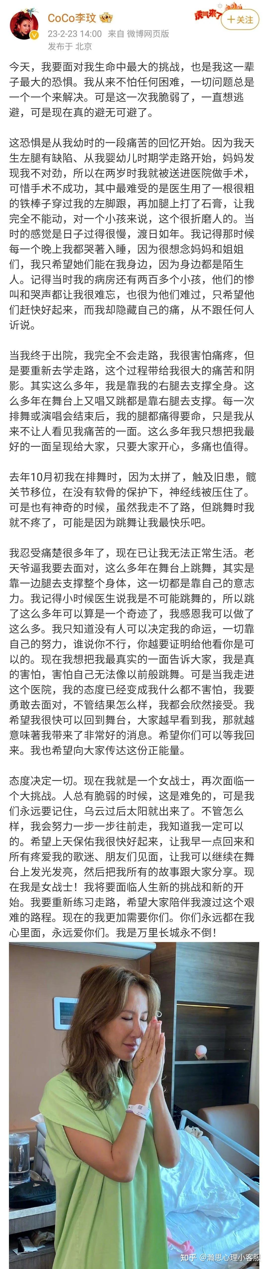 今年2月份,她还在微博上发文说:“我要面对生命中最大的挑战与恐惧”。