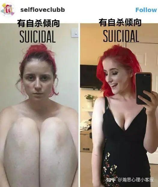 但实际上,这两张照片都是在她有自杀情绪的时候拍的。