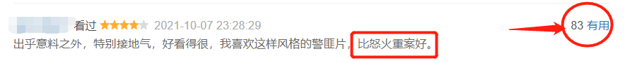 还有网友评论称“特别接地气,比怒火重案好”,并且收获了83位同道中人的点赞。