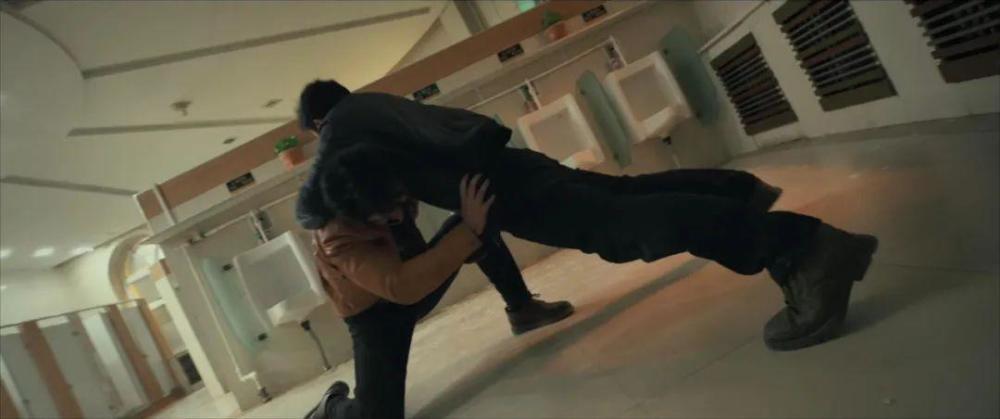 而最惊艳的一笔,是两人缠斗到后期,在不足一平方米的厕所隔间里的对决。