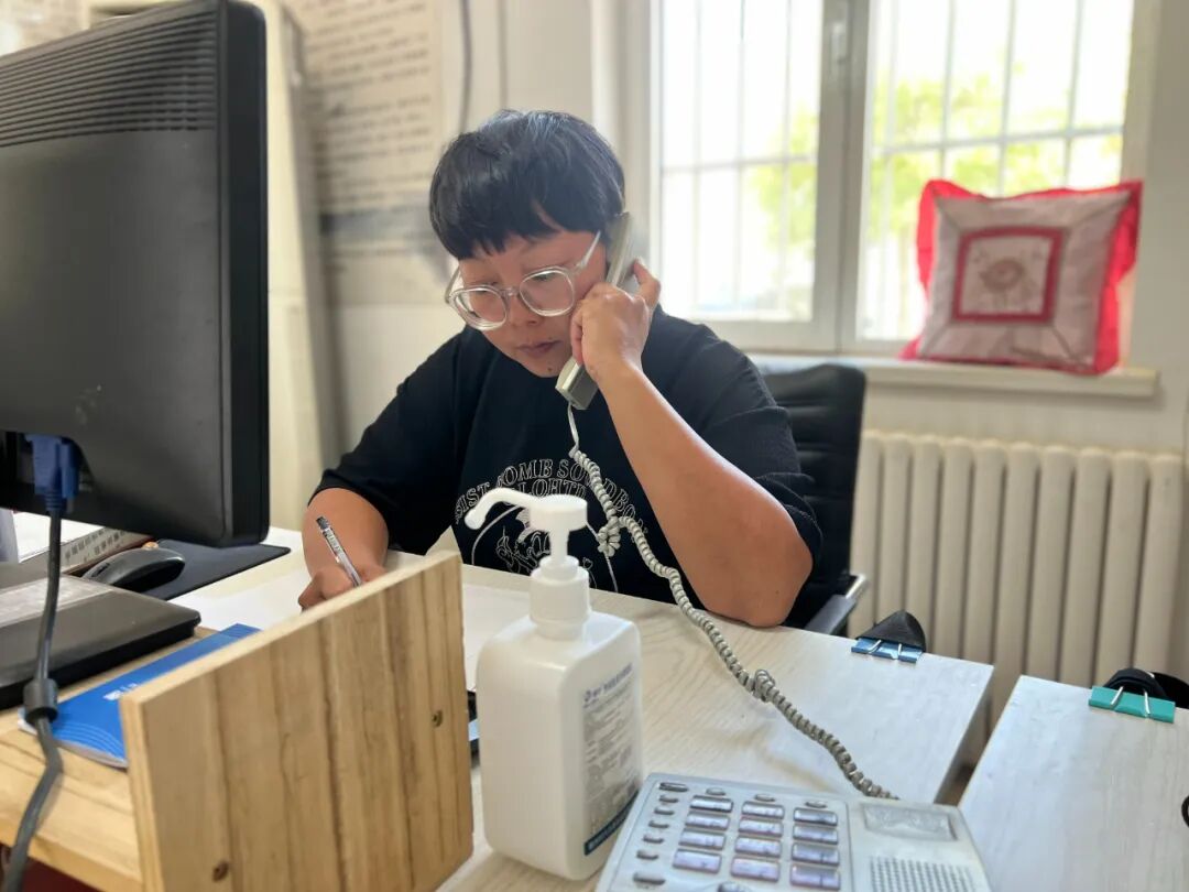 董健蕊接听居民电话做好记录。记者 周磊 摄